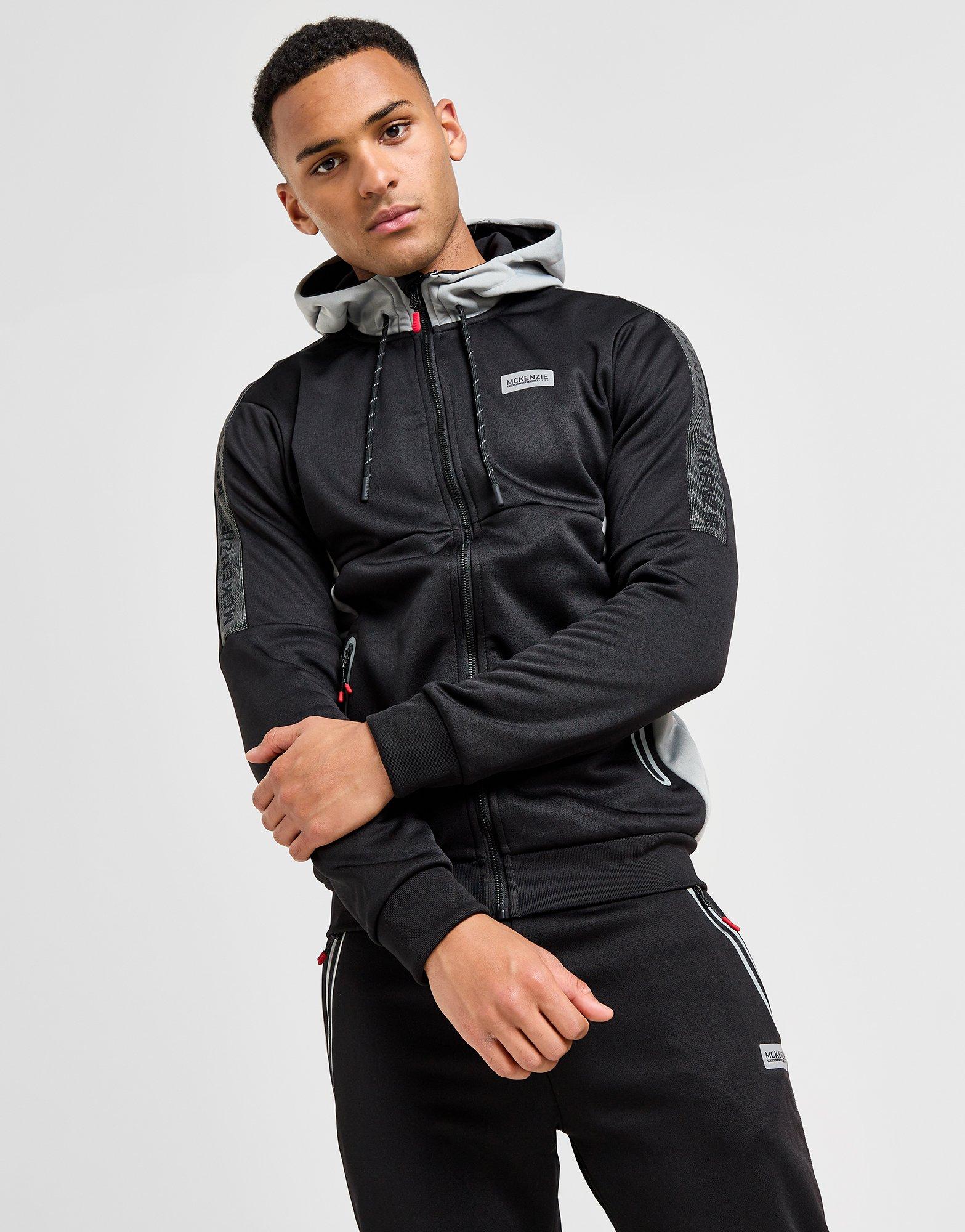 Estilo técnico combina com conforto casual com o Casaco de Fato de Treino Montana Poly Fleece para homem da McKenzie. Num design em preto e cinza com blocos de cor, esta camada é feita de tecido poliéster suave e fleece para maior conforto. Inclui uma gola elevada, capuz ajustável com cordão e detalhes com fita nos bolsos com fecho. Finalizado com um badge refletor da McKenzie no peito. Lavável à máquina.